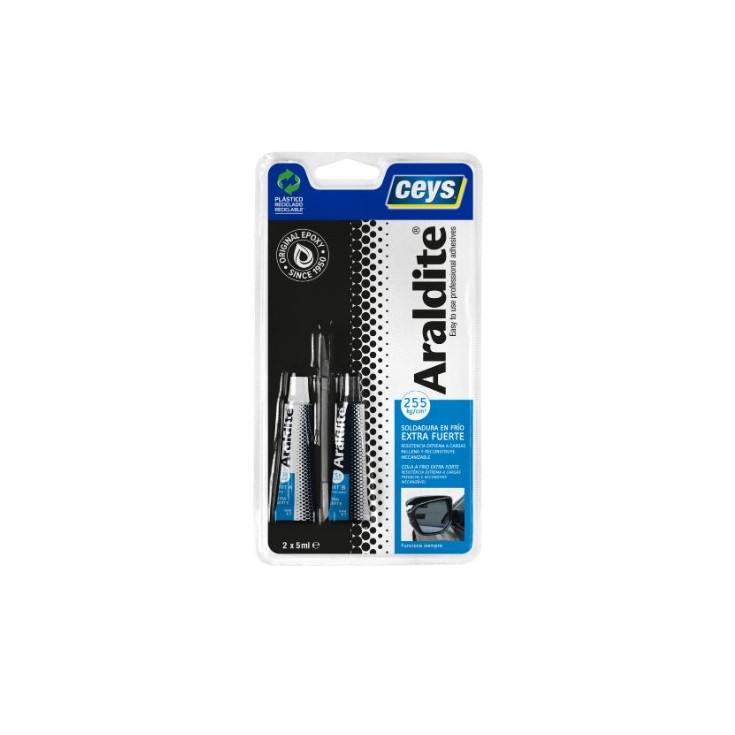 Adhesivo epoxi de dos componentes, una resina y un endurecedor, que reaccionan al mezclarse. Es el adhesivo recomendado para todo tipo de uniones de gran resistencia.