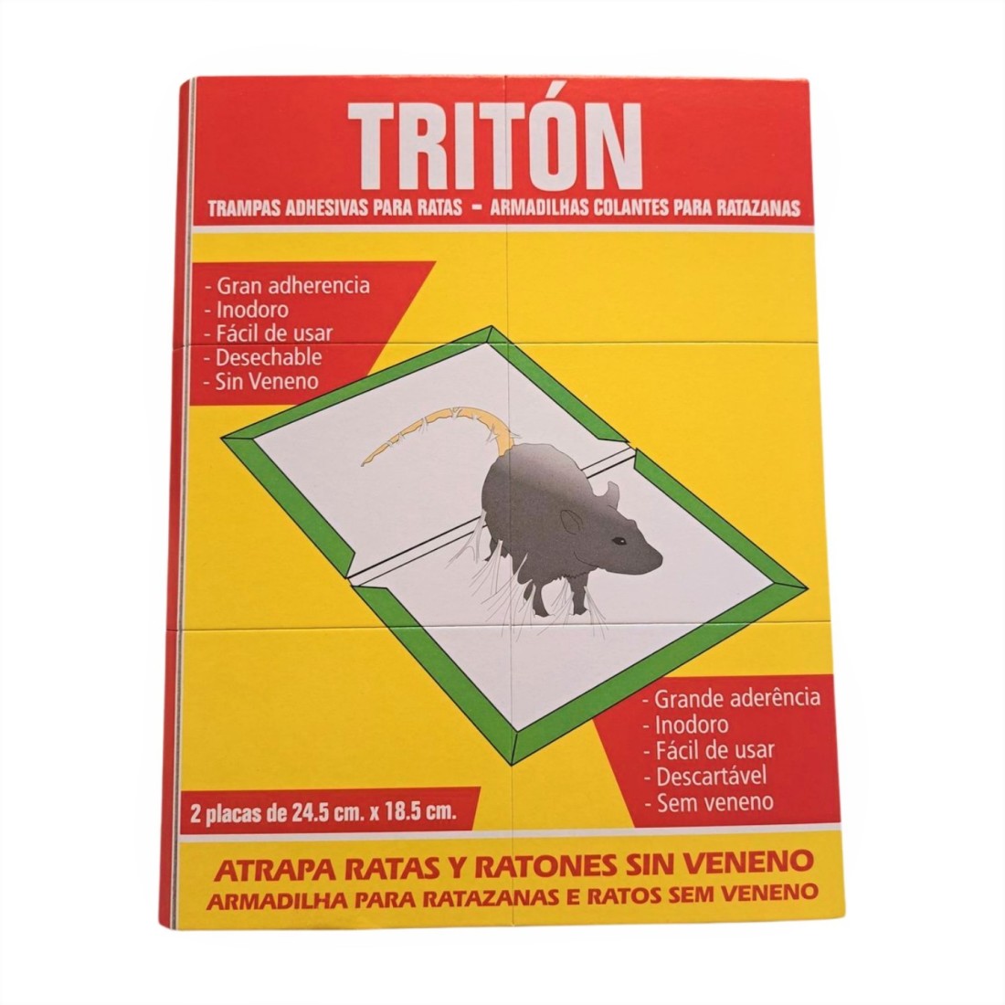 Las Trampas adhesivas Triton son un sistema mecánico sencillo y eficaz, ideal para capturar ratas y ratones sin recurrir a sustancias tóxicas. Este formato de 2 unidades incluye adhesivo de alta adherencia en base de cartón, perfecto para instalaciones en zonas interiores y exteriores protegidas.